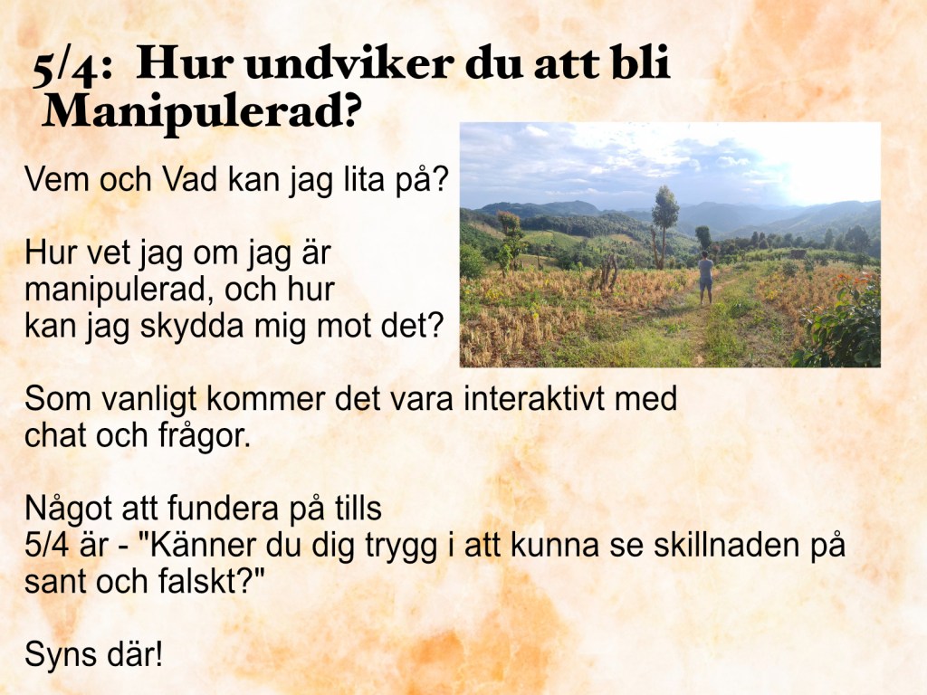 Detta är en katalog av tidigare livesändningar som vi sänt. Om någon verkar intressant kan du föreslå att temat tas upp igen i forumtråden ”Förslag till kommande lives”.