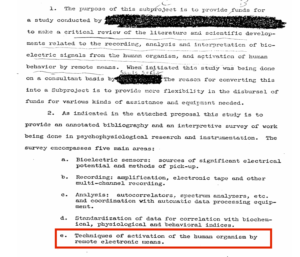 ”Aktiveringstekniker av den mänskliga organismen via elektronisk fjärrstyrning.”