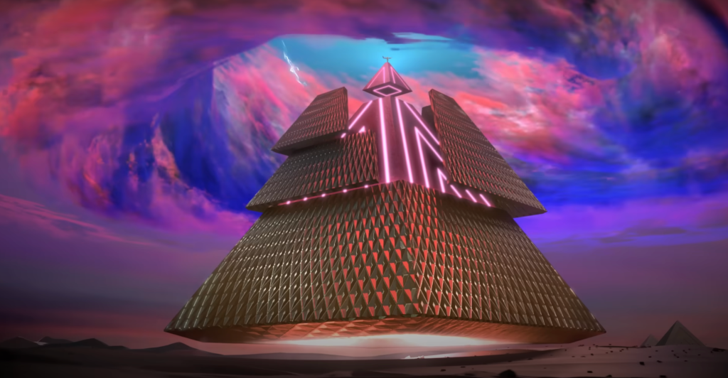 Här är från musikvideon ’Dark Horse’ som innehåller löjligt mycket esoterisk symbolism som slutar med att hon kliver upp på toppen av en pyramid: