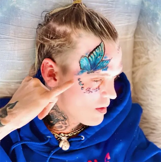 Aaron fick för sig att tatuera in en fjäril i ansiktet som minne till hans syster. Detta är samma syster som han anklagade för att ha våldtagit honom.
