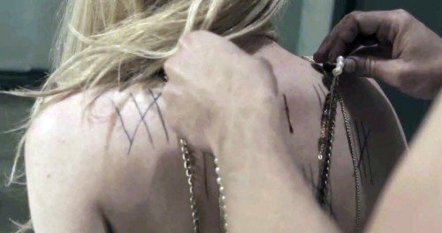Strax därefter befinner hon sig i en rullstol i en okänd facilitet med vakter som bär på Baphomet-masker.